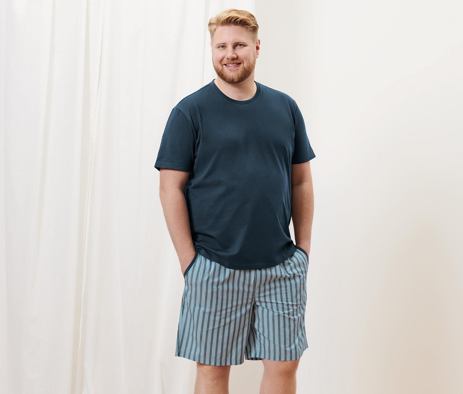 Короткая пижама с ткаными брюками Tchibo, топ темно-синий