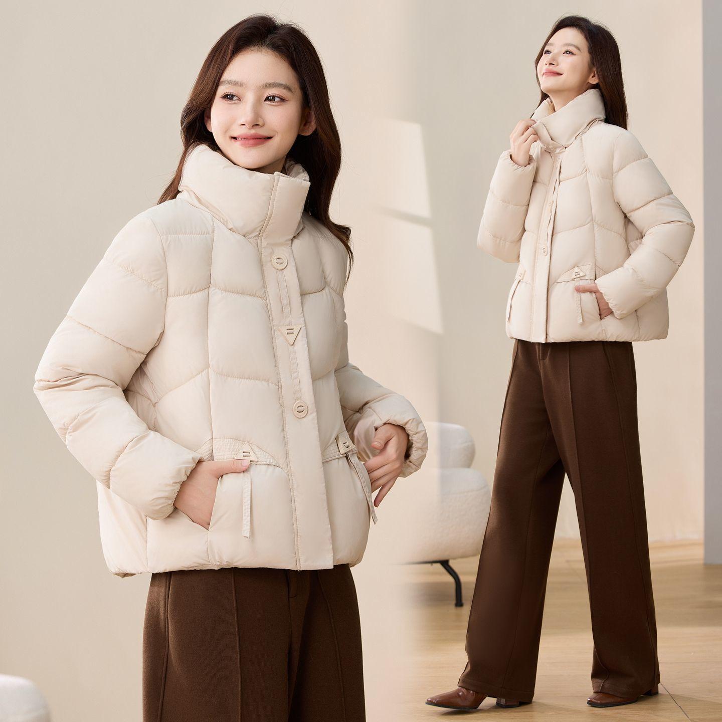 Короткая повседневная пуховая хлопковая одежда на осень и зиму, утолщенная, маленькая, модная и тонкая, теплая хлопковая одежда для женщин XL бежевый