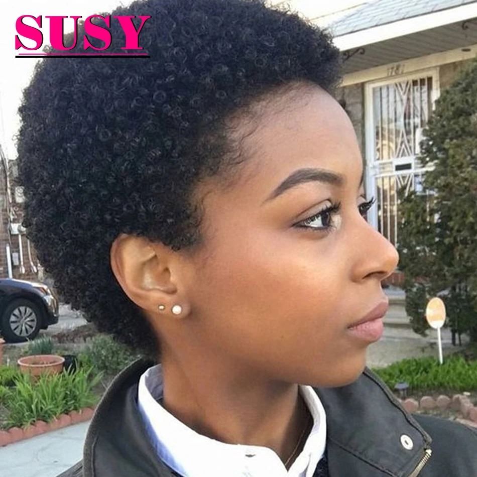 Короткая стрижка, парики вьющиеся человеческие волосы парик афро кудрявый вьющиеся Cheveux Humain женские парики Хумам волос для женщин парик не ...