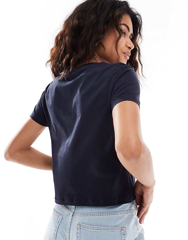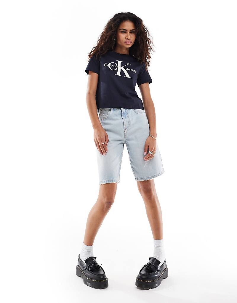 Короткая футболка темно-синего цвета Calvin Klein Jeans – с черно-белым логотипом
