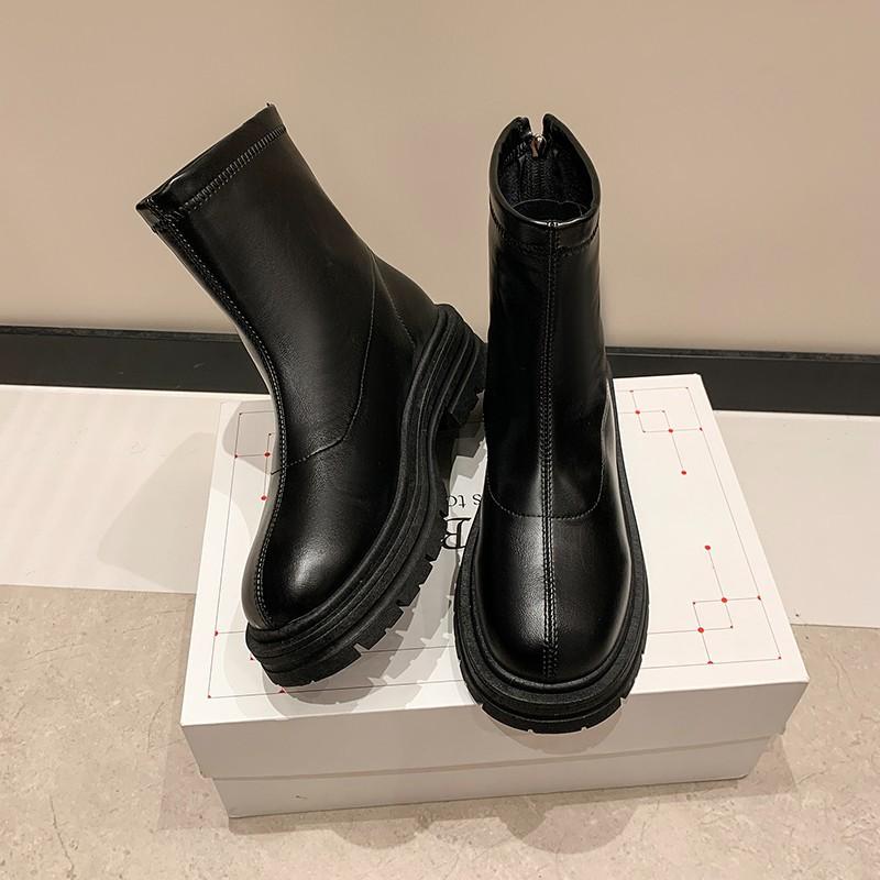 Короткие ботинки в британском стиле на толстой подошве, женские тонкие ботинки, осенне-зимние, новые, маленькие, мужские, с застежкой-молнией, тонкие эластичные ботинки 35 чёрный