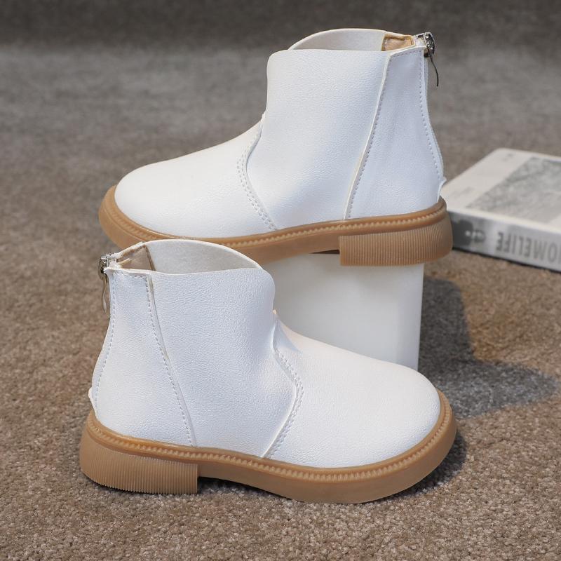Короткие ботинки для девочек, нескользящие, на плоской подошве, модная детская обувь, молния сзади, черные, белые, нескользящие, корейский стиль, детские ботинки, повседневные, простые 33