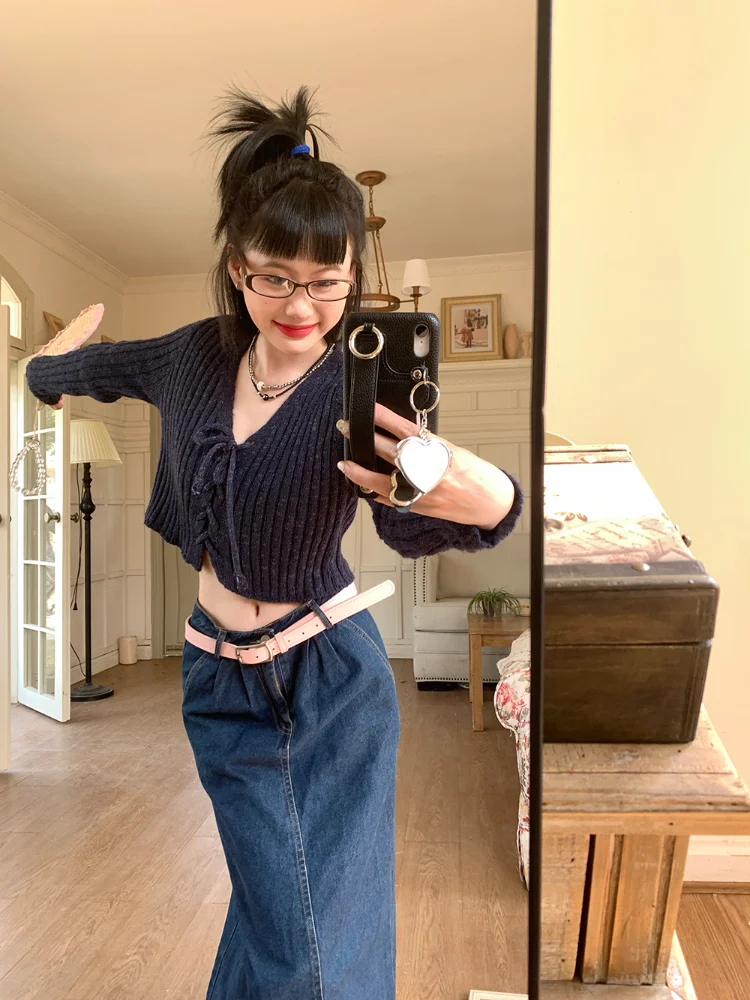Короткий топ Korobov с перекрестными переплетениями, смешанных цветов, вязаный кардиган в полоску, темпераментный Тонкий Модный корейский кардиган с длинными рукавами, Y2k одежда