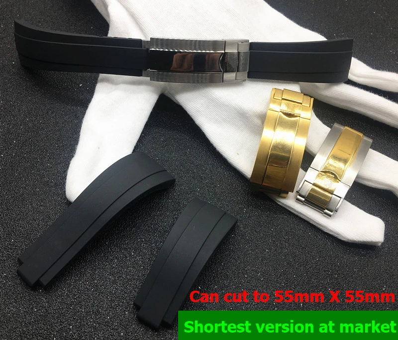 Короткий черный силиконовый резиновый ремешок для часов 20 мм, ремешок для наручных часов Daytona Submariner GMT OYSTERFLEX, браслет с логотипом на