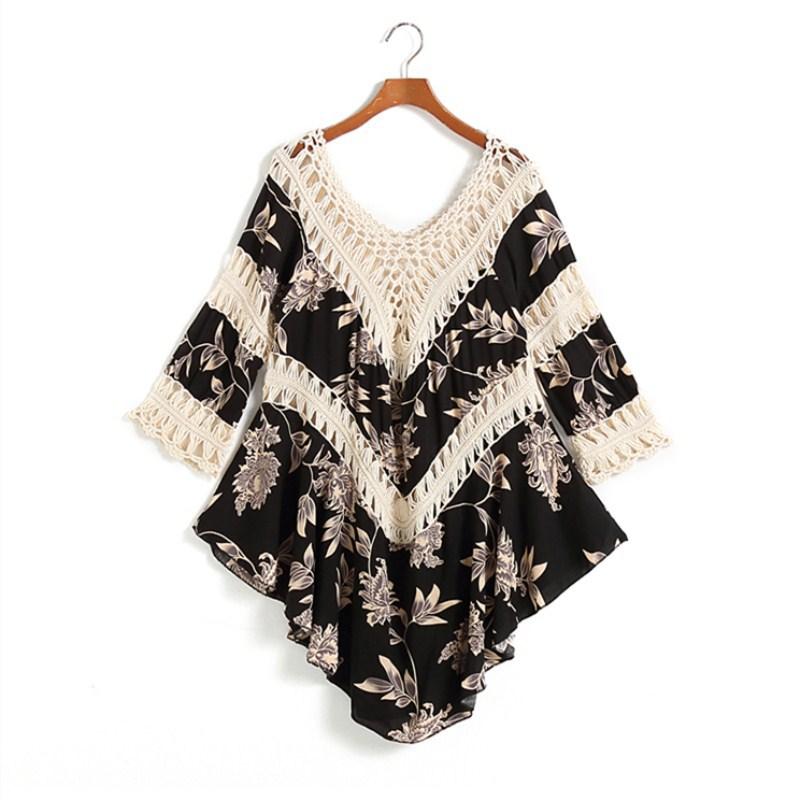 Короткое платье с цветочным принтом, летнее женское винтажное шифоновое богемное пляжное платье с v-образным вырезом и вырезом one size бежевый