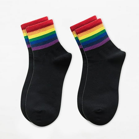 Pxiakgy socks for women Winter New UniCotton Rainbow Striped Socks Xmas Fashion Warm Chrismas E + One size