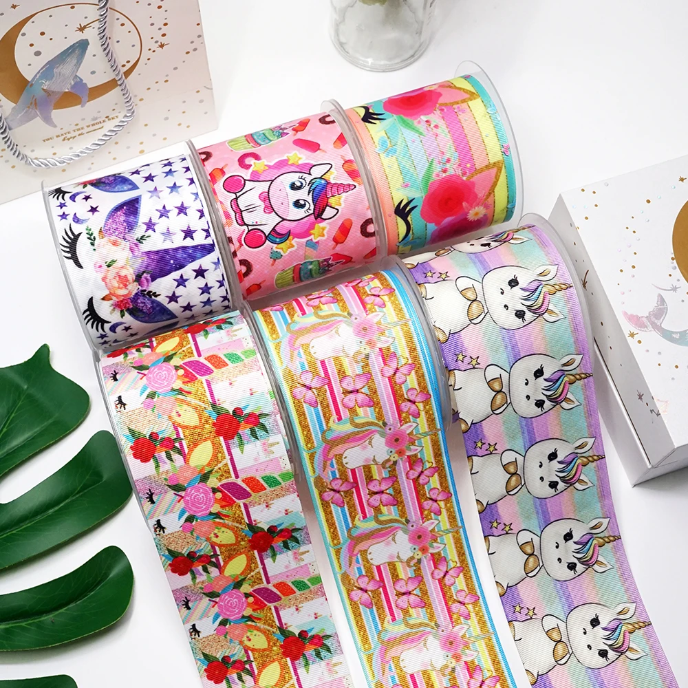 Корсажная лента с принтом единорога из мультфильма "сделай сам", лента для рукоделия фурнитура для шитья, 5 ярдов 26772