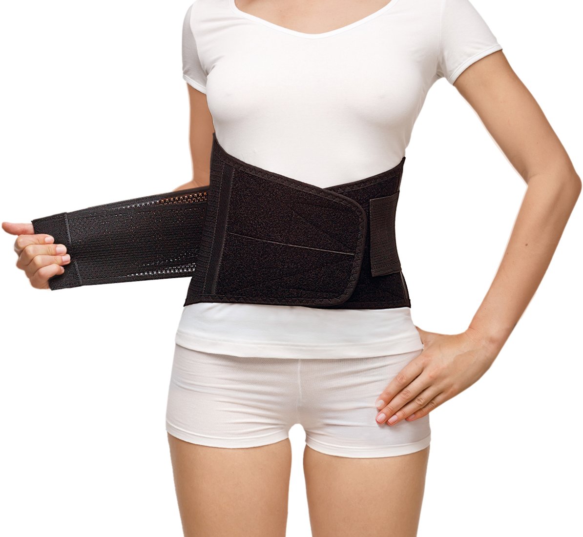 локализация L1-L5, степень фиксации: средняя, основной материал: полиэстер, латекс, текстиль (воздухопроницаема ткань), 6 ребер жесткости, обхват талии 77-90 см, размер 2, цвет черный