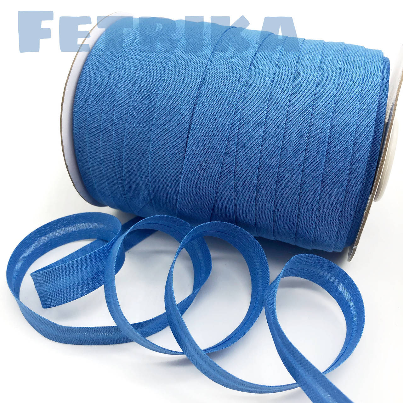 Косая-бейка хлопковая темно-голубая, 15 мм, Темно-голубой