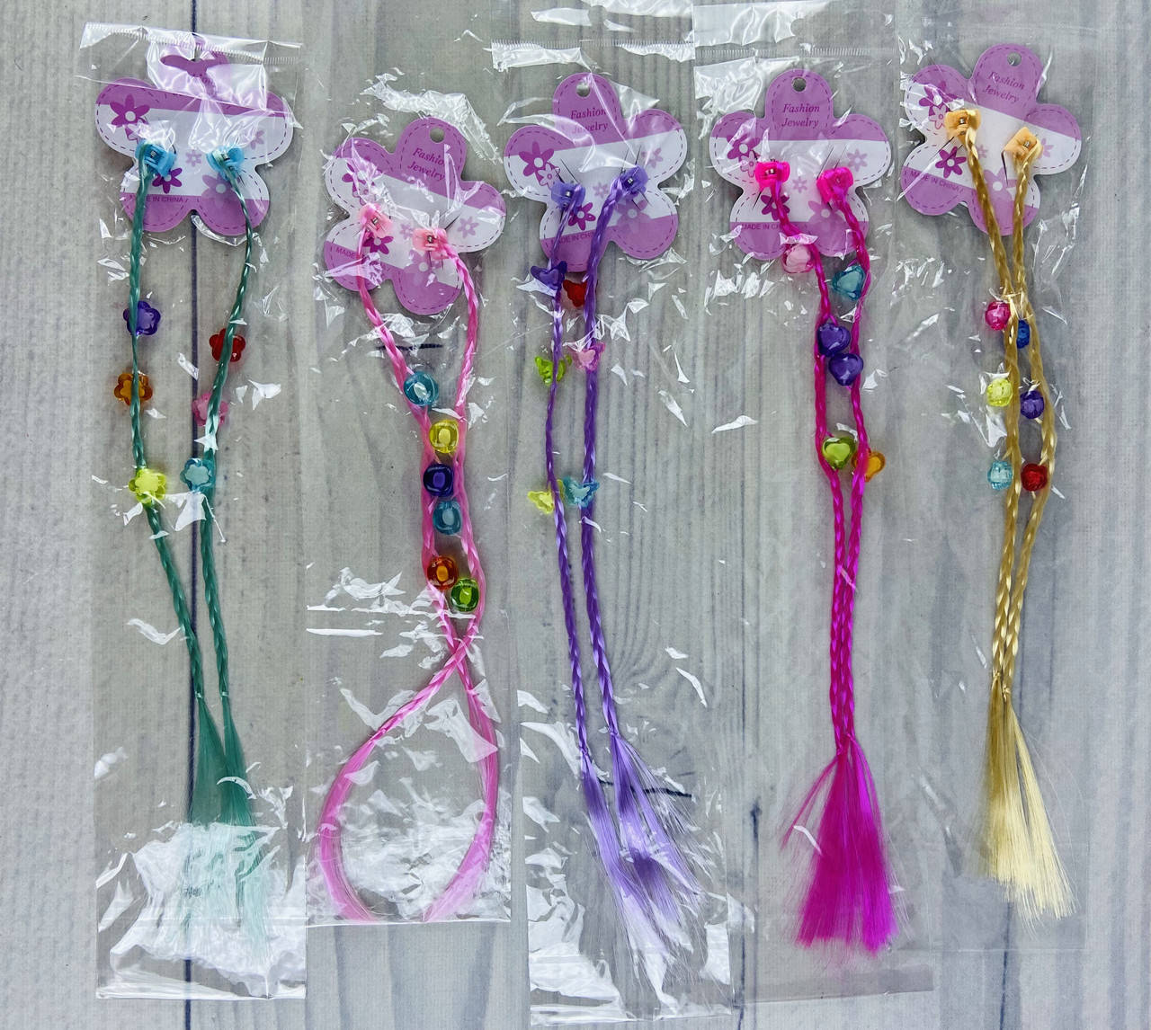 Косичка крепится с помощью крабика. Косичка декорирована бабочками или звездочками.