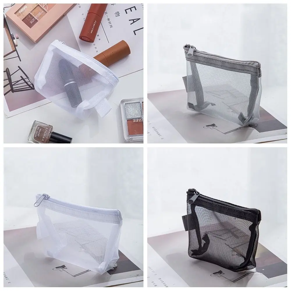 Косметичка для губной помады, прозрачная Сетчатая Сумка, Маленькая женская сумка для хранения, мини-кошелек для монет, однотонная сумка для хранения гигиенических салфеток