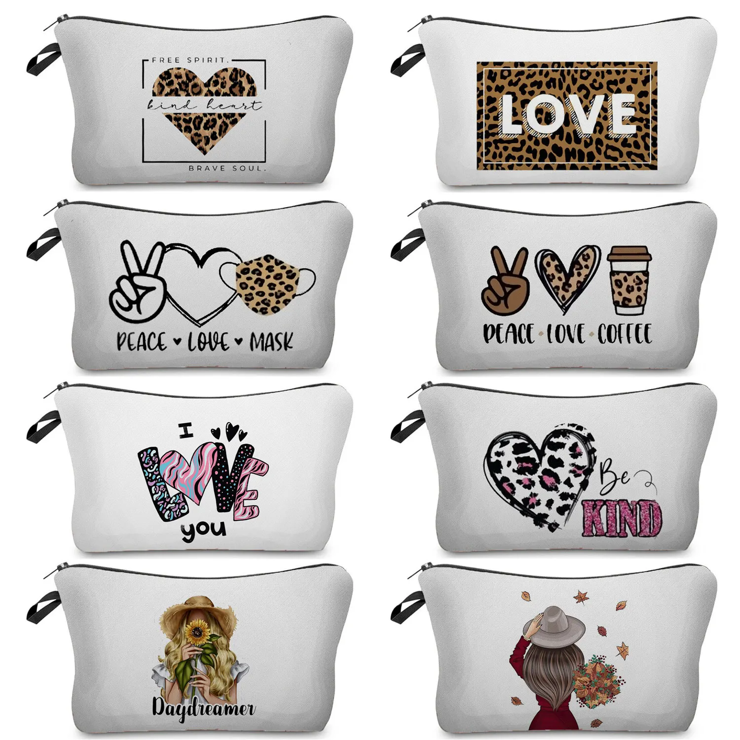 Косметичка женская с леопардовым принтом, сумочка для путешествий с сердцем, дорожный саквояж для туалетных принадлежностей, модный трендовый подарок для учеников школы, 2022