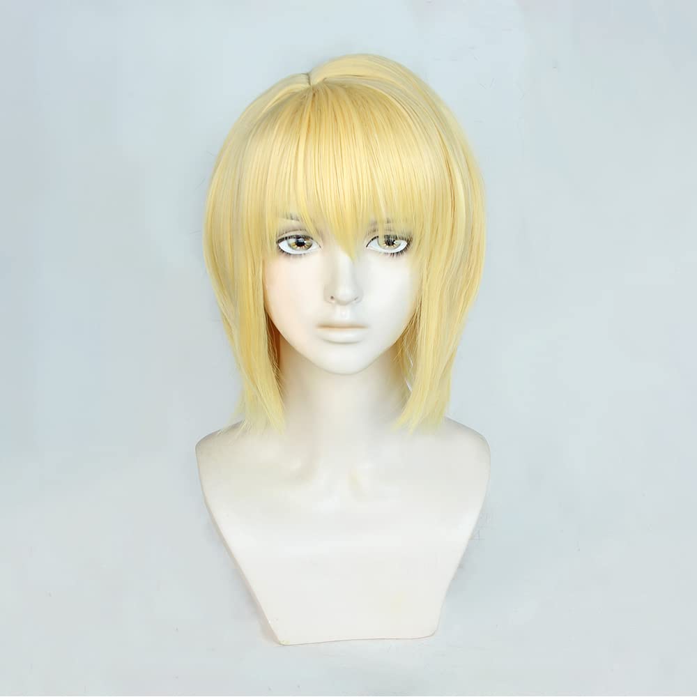 Косплей Желтый Крутой Короткий Идеально для Вечеринок и с 3 Бонусами и Блокнотом для Заметок Термостойкий Парик, Второй Замок, Золотой, Волосы, Костюмы, Предметы Сетка,