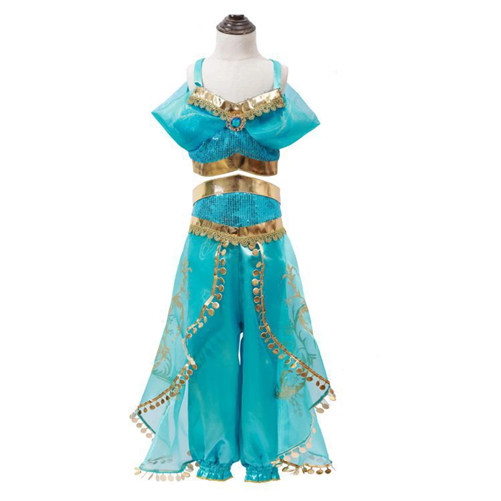Косплей-костюм Аладдина для девочек, Детский костюм принцессы жасмин, наряды для Хэллоуина, карнавала
