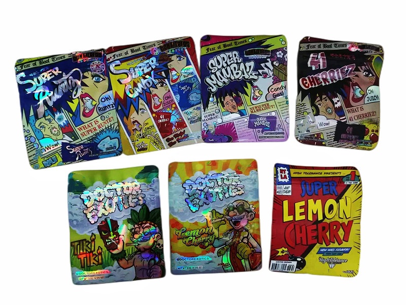 3.5G mylar bag edible package don merfos super candy mambaz cherries runtz doctor exotics lemon cherry gelato ice cream cake truffles ZAZA BUBBLEGUM kush custom