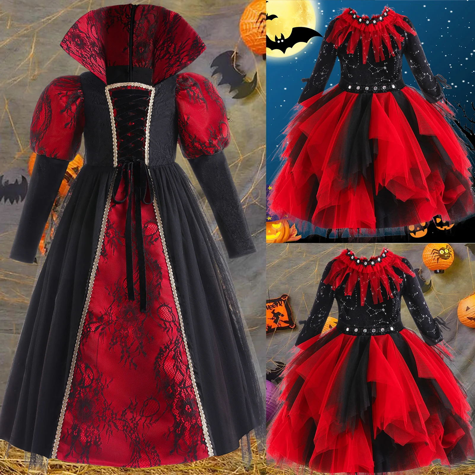 Костюм Королевы вампира, шикарный кружевной бандаж, Женский костюм вампира, средневековый с кружевом, костюм на Хэллоуин для детской вечеринки