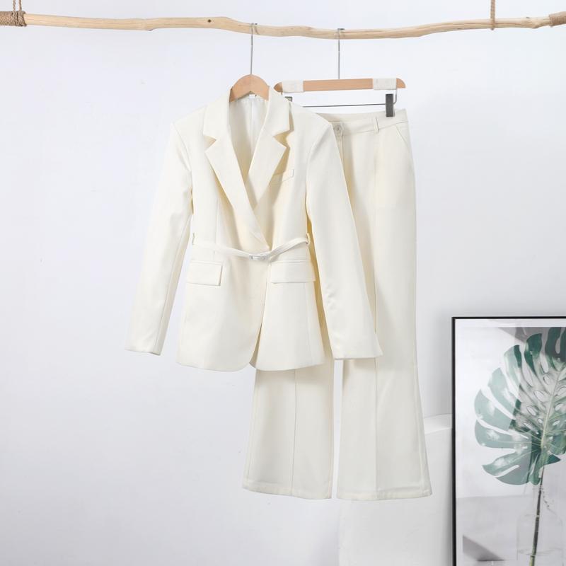 Костюм Пальто Длинные Брюки Женские Элегантные Отложной Воротник Длинные Рукава Талия Приталенная Куртка Широкие Брюки Наряды 2025 Уличная Одежда S белый