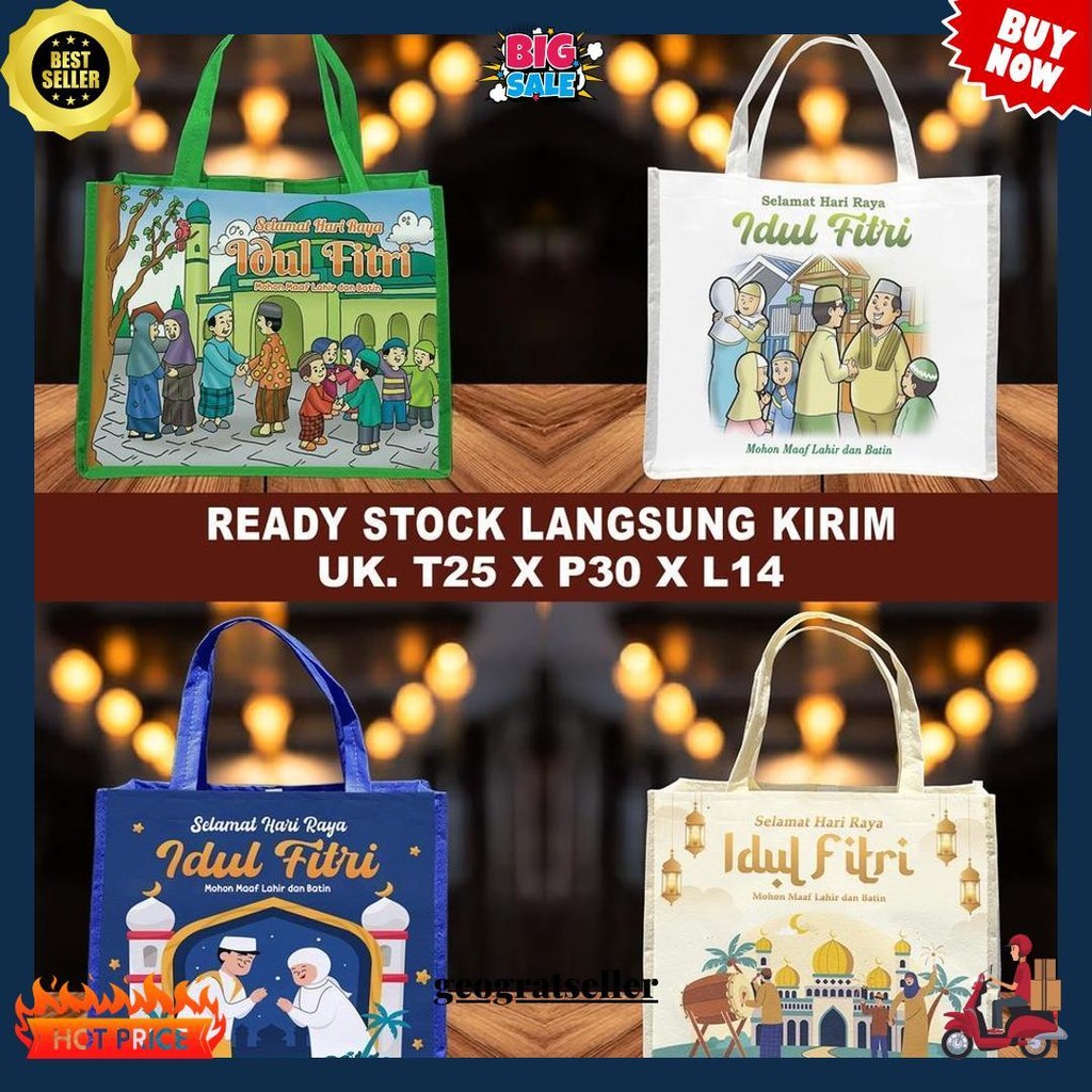 Harga Satuan Goodie Bag Handle Idul Fitri Uk 25X30X14 / Spunbond Lebaran / Tas Idul Fitri New Design Original Produk
