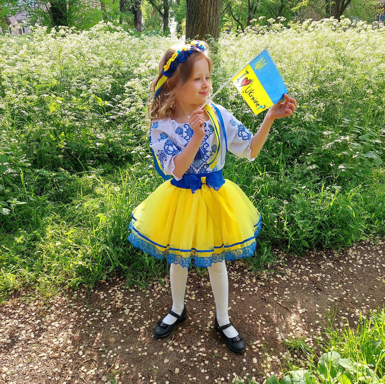 Костюм вишиванка синьо-жовтий для дівчинки "Слава Нації"