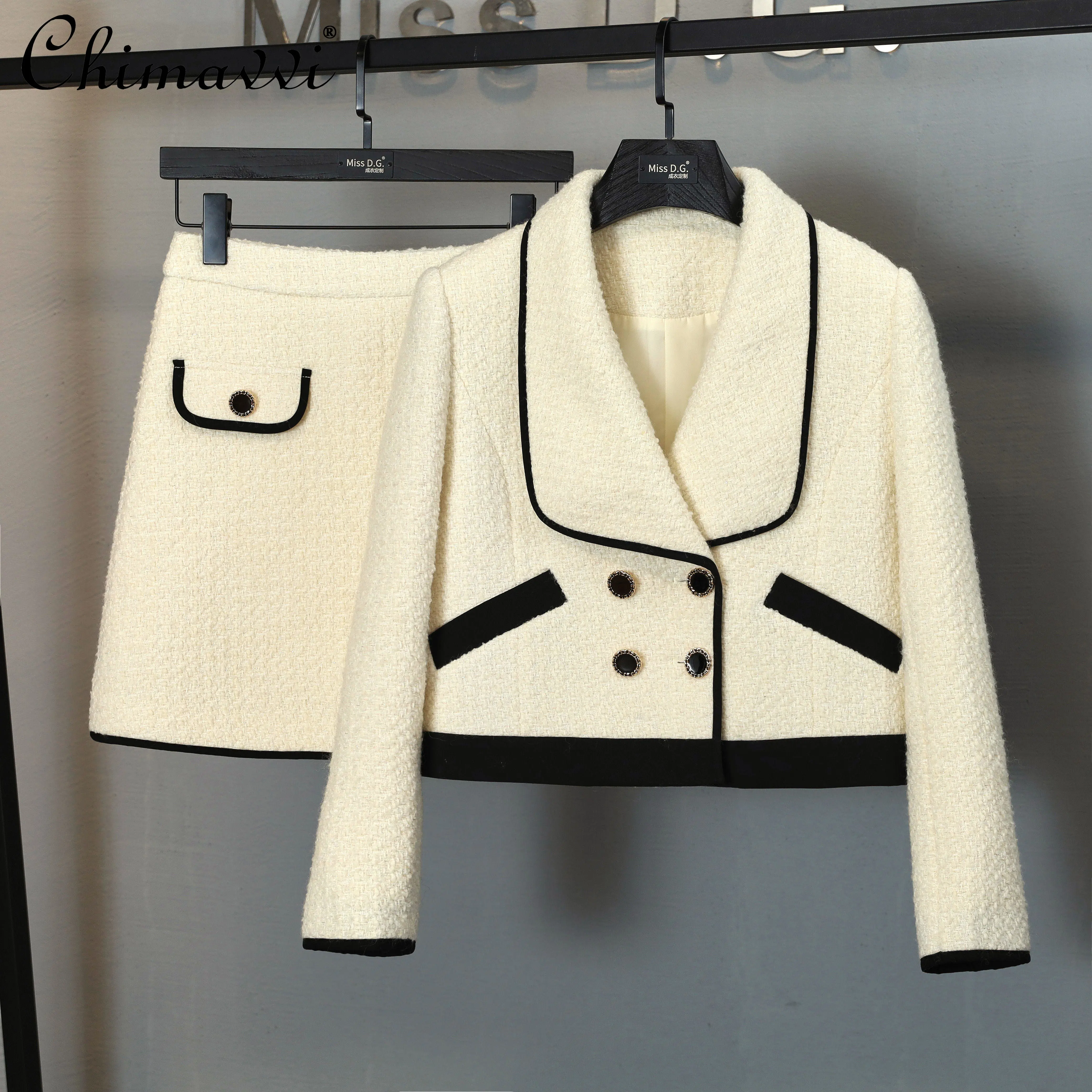 Костюм высокого качества для женщин, осень, новый модный дизайн, короткое пальто контрастных цветов, темпераментная юбка светильник роскош...