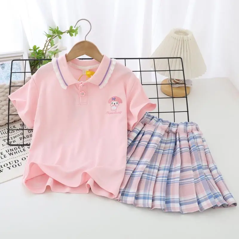 Костюм детский летний из тонкой юбки с коротким рукавом и мультяшным принтом