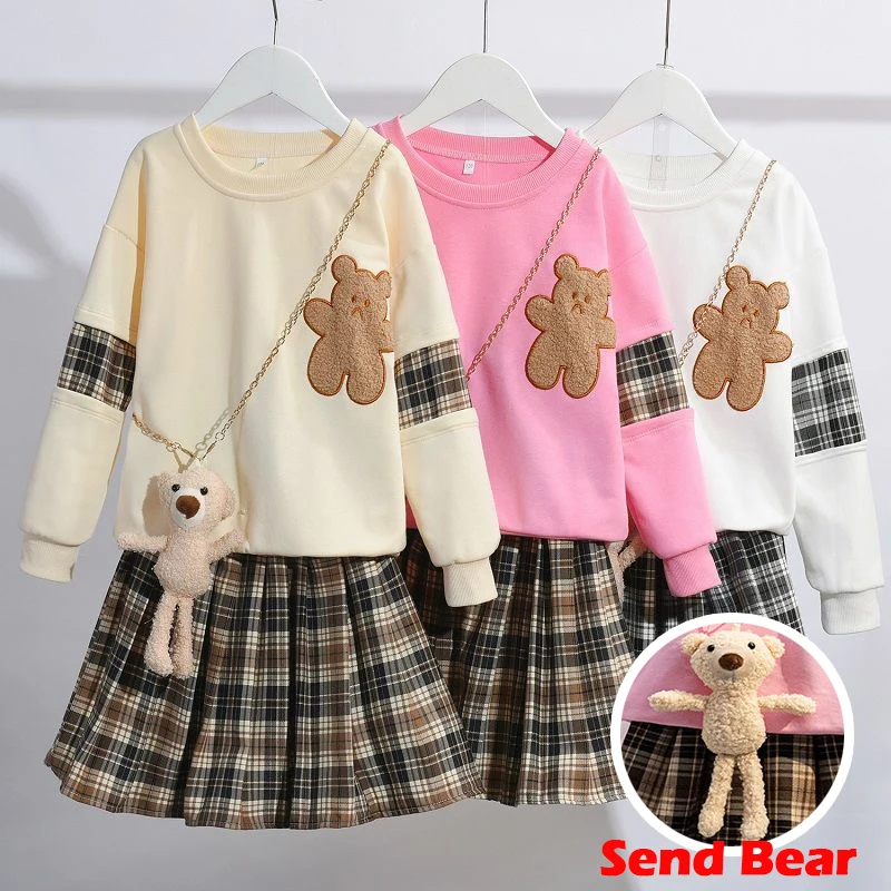Костюм для девочек на день рождения, комплект для подростков, Свитшот в клетку, одежда для девочек, Милая юбка для детей 3-14 лет, 2 шт.
