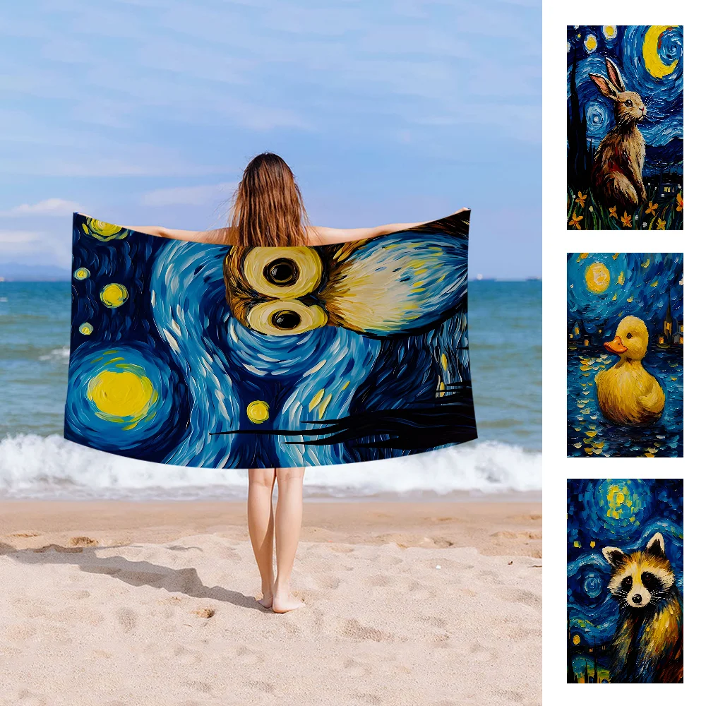 Van Gogh The Starry Night Romantic Black Cat Towel Microfiber Beach Towel Absorbent Quick dry Soft Yoga Swimming Resort Mountain
