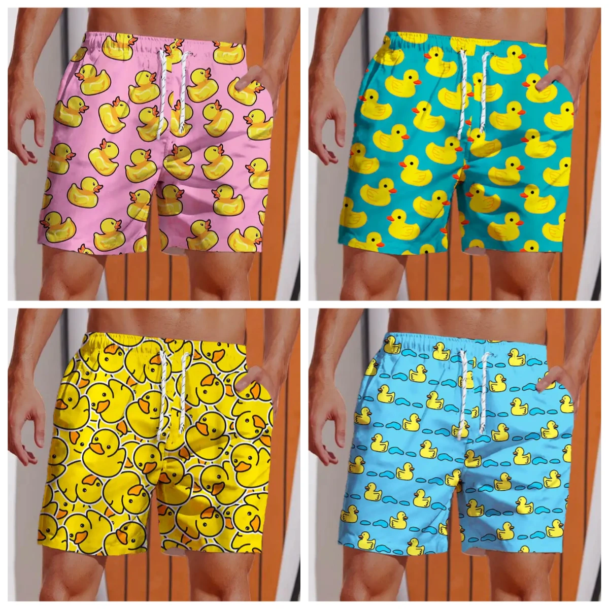 Мужские шорты Гавайская желтая утка Мужские короткие летние шорты для плавания с эластичной резинкой на талии Дышащие короткие уличные шорты с 3D принтом