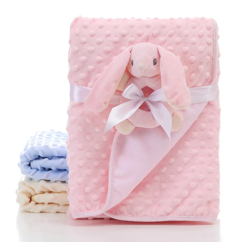 Muslinlife INS New Arrival Minky Dot Baby Blanket Newborn Baby Bell Blanket Double Layers Super Soft Baby Blanket Wrap With Toy