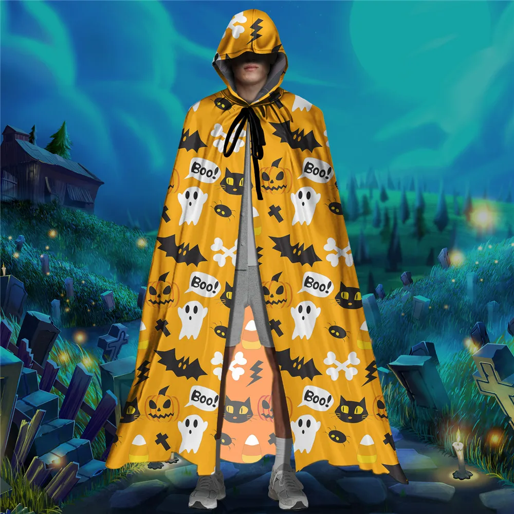 Костюм для косплея для мужчин и женщин, Длинная накидка с капюшоном и принтом «летучая мышь и призраки», одежда для вечевечерние НКИ на Хэлл...