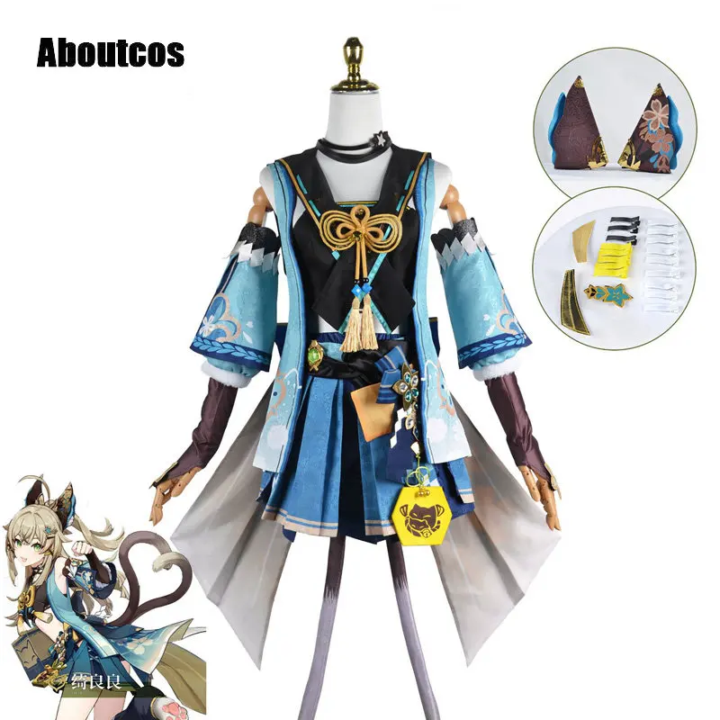 Костюм для косплея Aboutcos Genshin Impact Kirara, костюм, униформа, костюм с ушами, хвостом, звездами, котом, Хэллоуин, женская одежда