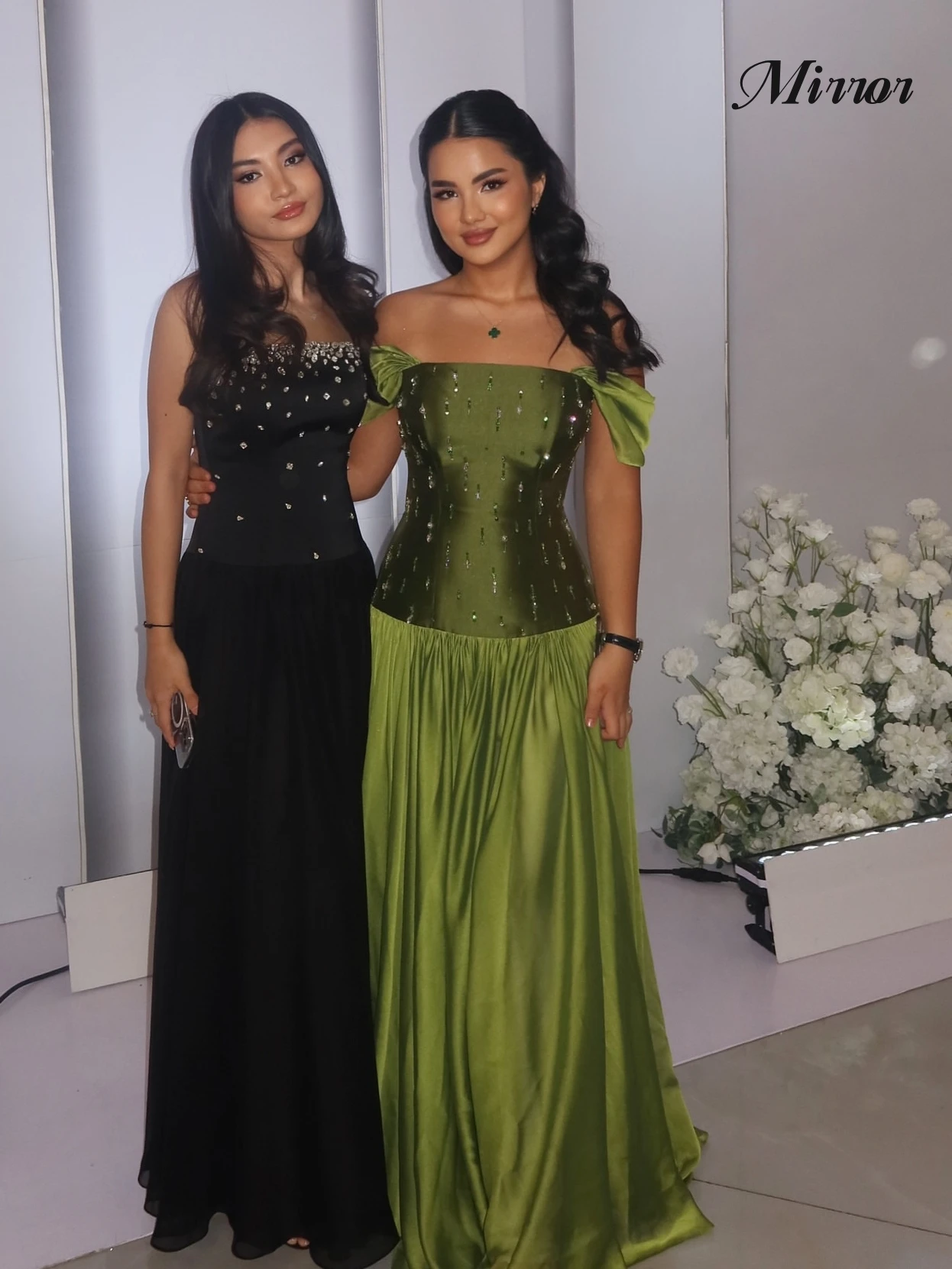 Mirror Dress Elegant Vintage Sweet Green Satin Beads Off the Shoulder Customized Formal Occasion Prom Dress Evening Party Gowns