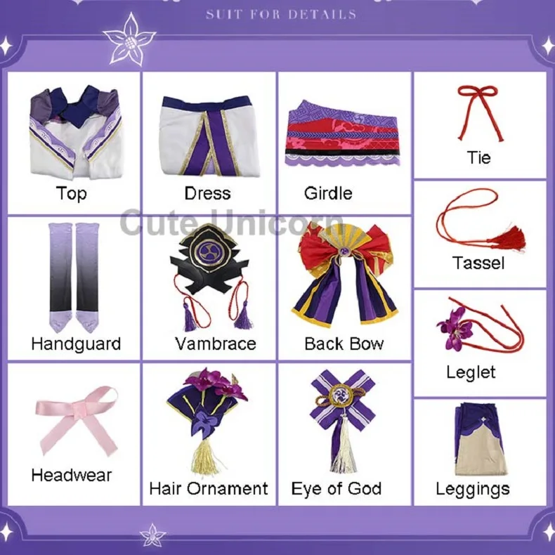 Костюм для косплея Genshin Impact Raiden Shogun, парик, Женский костюм на Хэллоуин, пальто, платье, аксессуары
