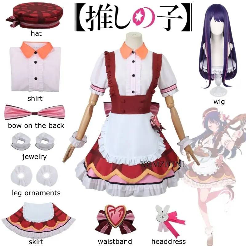 Костюм для косплея Hoshino Ai Oshi No Ko аниме, платье шоколадной горничной, униформа на Хэллоуин, Женская юбка в стиле "Лолита", парик