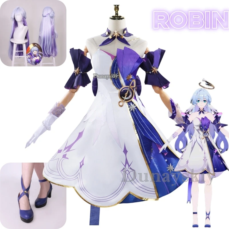 Костюм для косплея Robin из аниме «Honkai: Star Rail», одежда, парик, обувь, униформа для косплея, платье для представлений на Хэллоуин