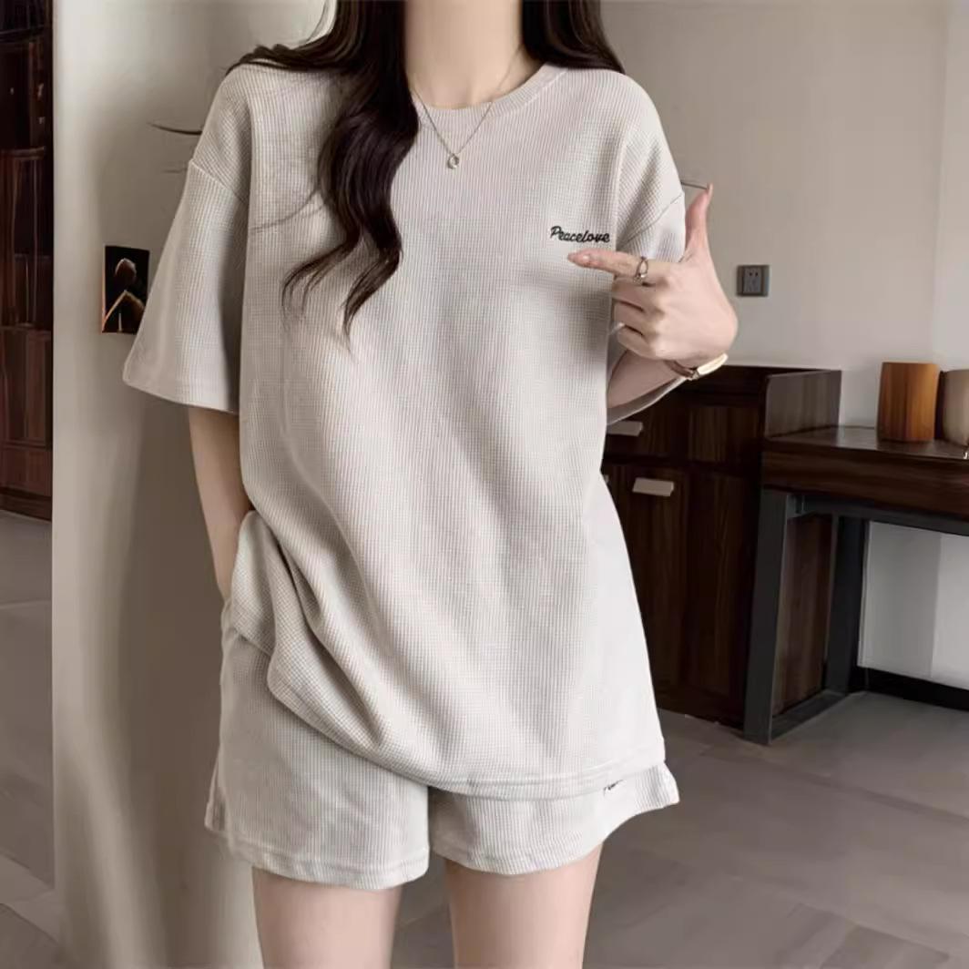Костюм женский летний свободный с короткими рукавами шорты Can Be Salt and Sweet повседневный спортивный вышитый костюм из двух частей XS абрикосовый