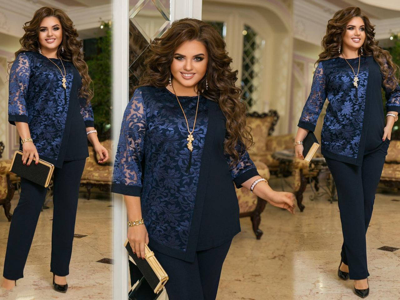 Костюм женский шикарный праздничный до 60 размера, Синий