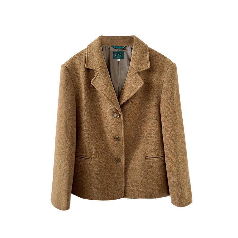 «Костюм из корейской шерсти в стиле ретро»: Желто-коричневое короткое пальто на весну/осень 2025 г. S