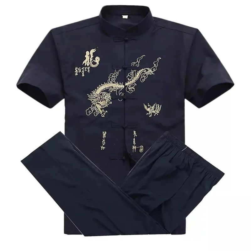 Костюм кунг-фу Мужской Хлопковый с вышивкой, униформа Ву Шу, рубашка с коротким рукавом и брюки, Размеры M, L, XL, XXL, XXXL