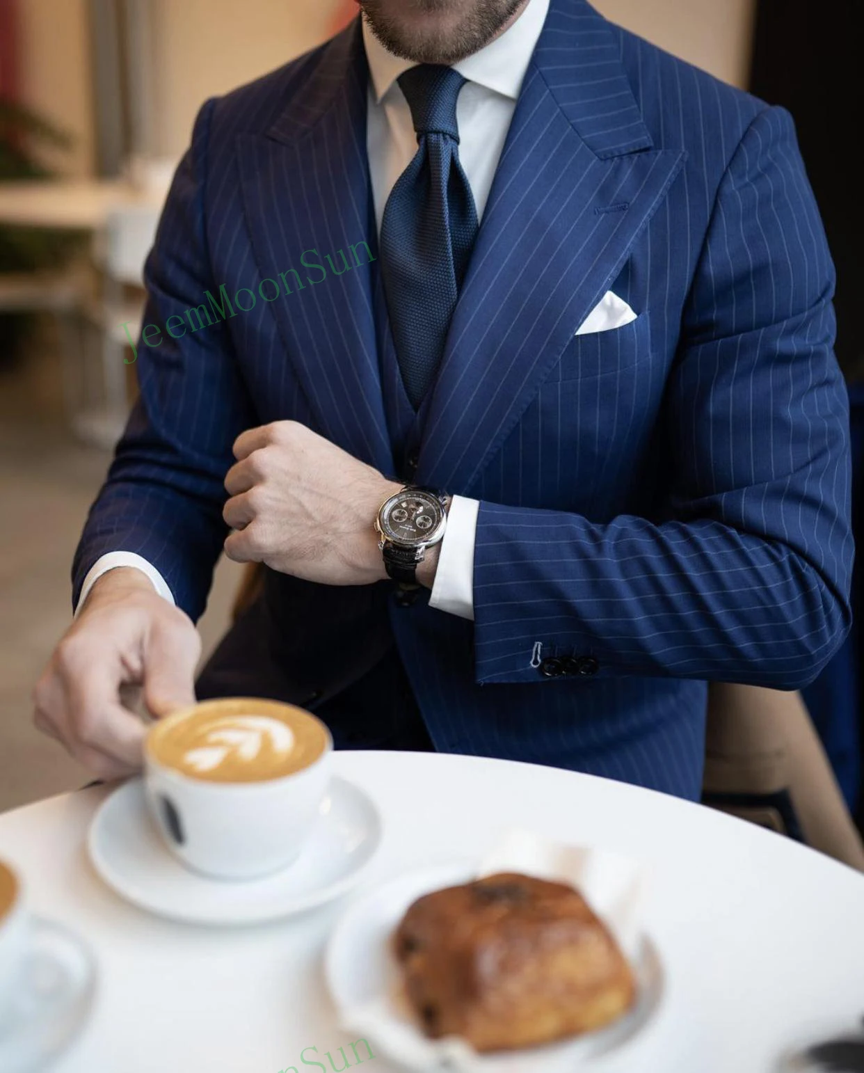 Костюм мужской в темно-синюю полоску, облегающий костюм для жениха на выпускной, модель 2022 года, блестящий костюм из трех предметов (пиджак + ...