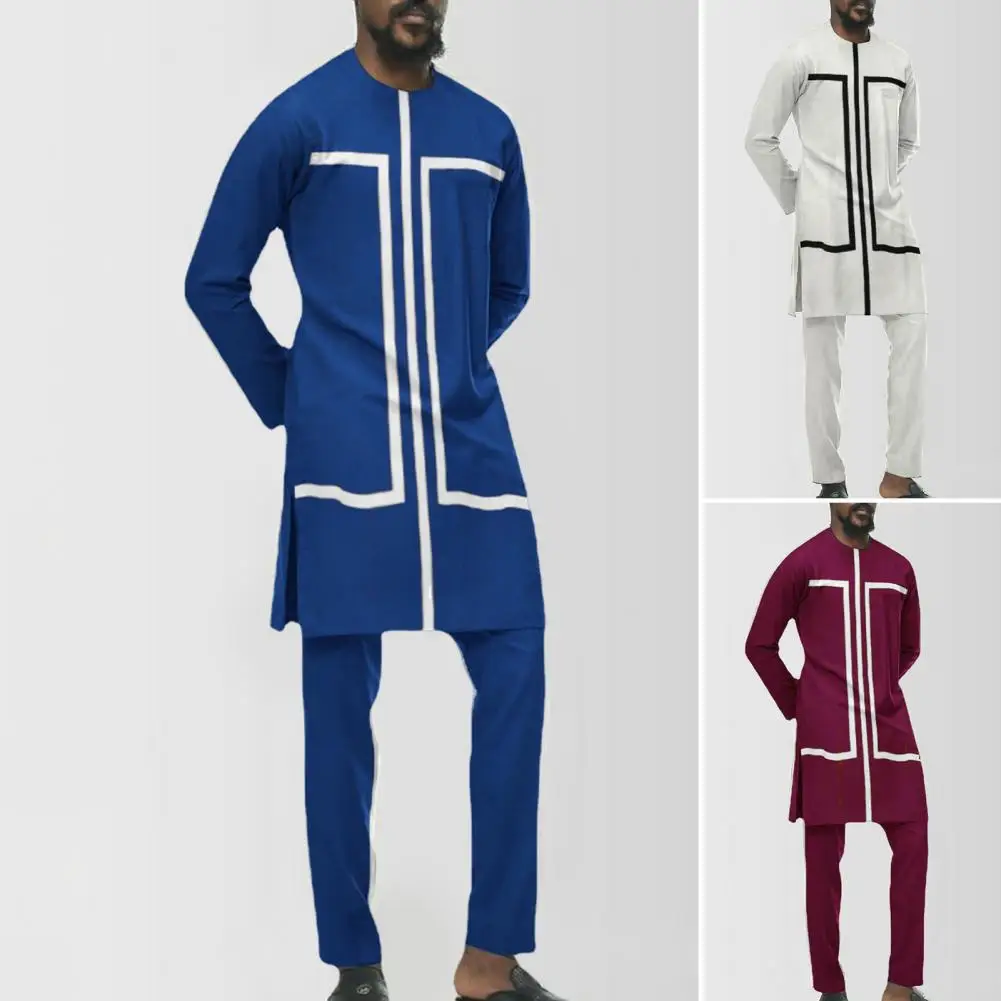 Костюм мужской в этническом стиле, рубашка с круглым вырезом и длинными рукавами, штаны со средней талией, комплект одежды, 2 шт./комплект