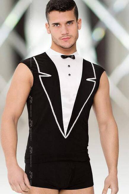 Трусы-шорты сексуально обтягивают ягодицы, делая их еще более приподнятыми и вожделенными. Устоять перед таким официантом невозможно. В комплекте: майка, трусы-шорты.