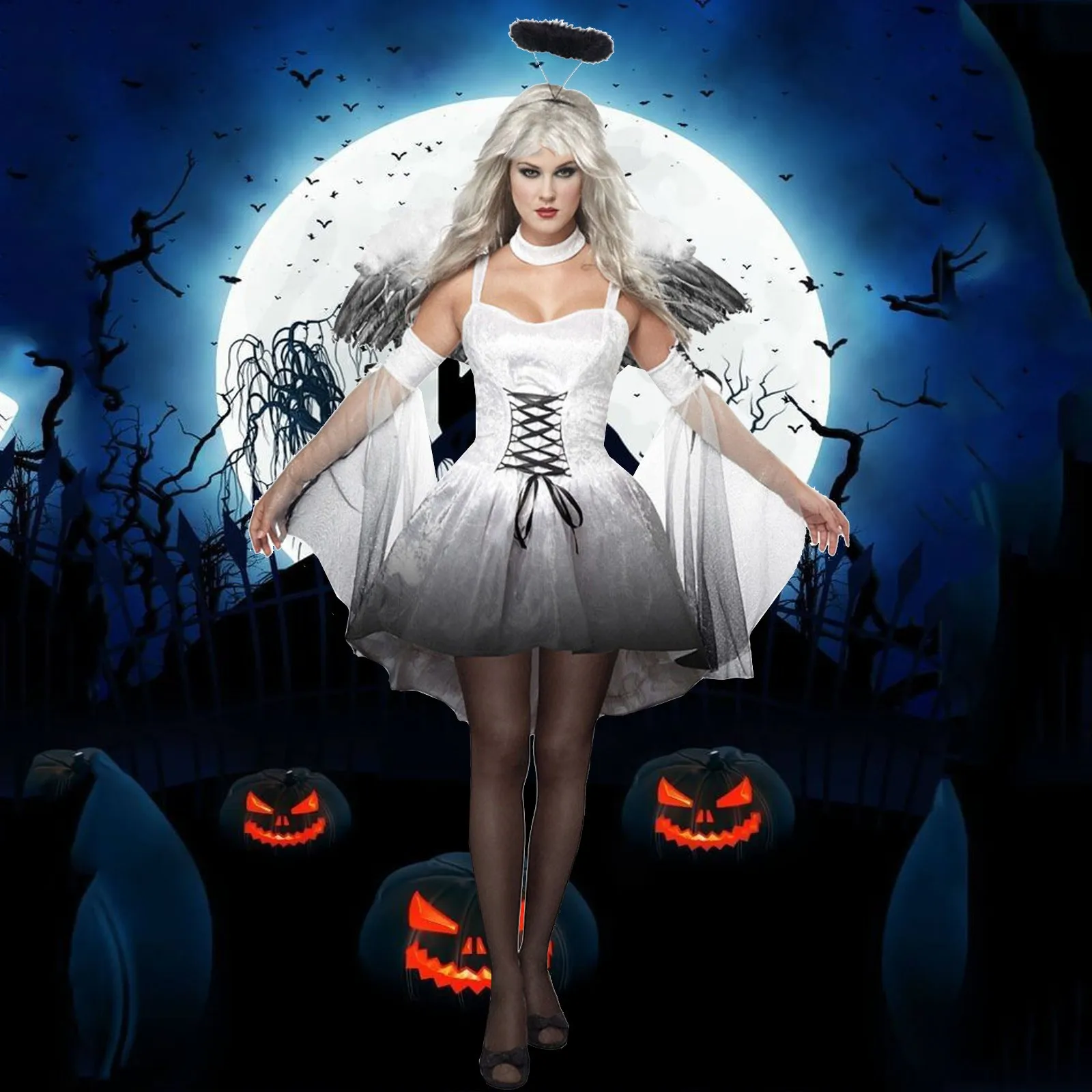 Костюм на Хэллоуин для девочек, костюм ангела, дьявола, платье для косплея ангела с крыльями, костюм на Хэллоуин, костюмы для косплея для девочек