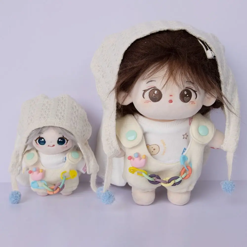 Костюм одежды для куклы 10/20 см, футболка с милым медведем, комбинезоны, брюки, вязаные шапки с большими кроличьими ушками для хлопковых набивных кукол-Idol, аксессуары