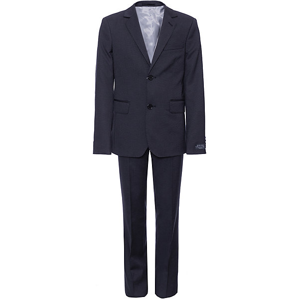 Классический школьный костюм Silver Spoon для мальчика. Пиджак застёгивается на пуговицы, имеется два кармана. Брюки застёгиваются на ширинку на молнии и пуговицу, есть шлёвки для ремня и карманы.