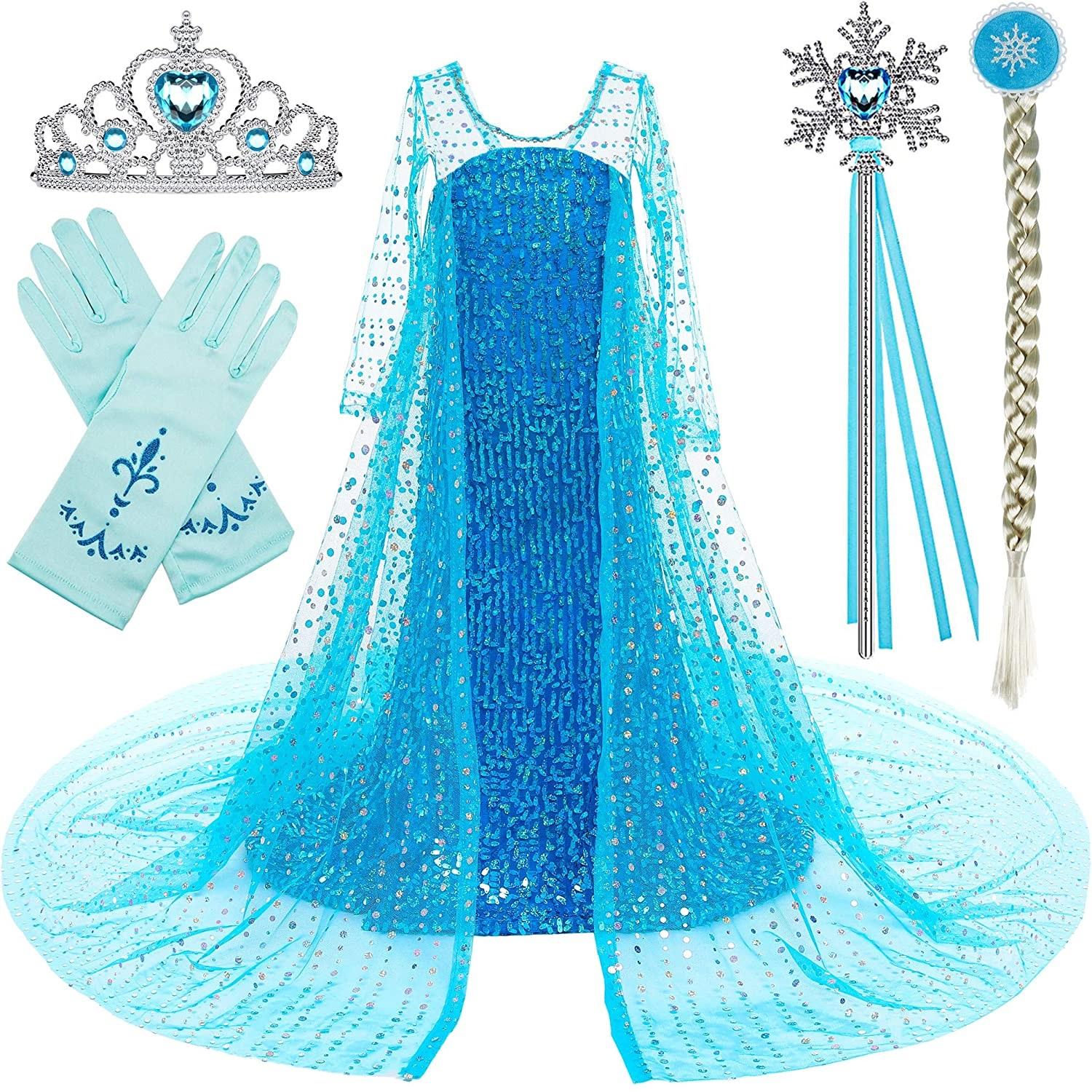 Костюм принцессы, длинная накидка для дня рождения, платье с короной, волшебной палочкой, париком, перчатками для маленьких девочек, синий, красный 110 синий