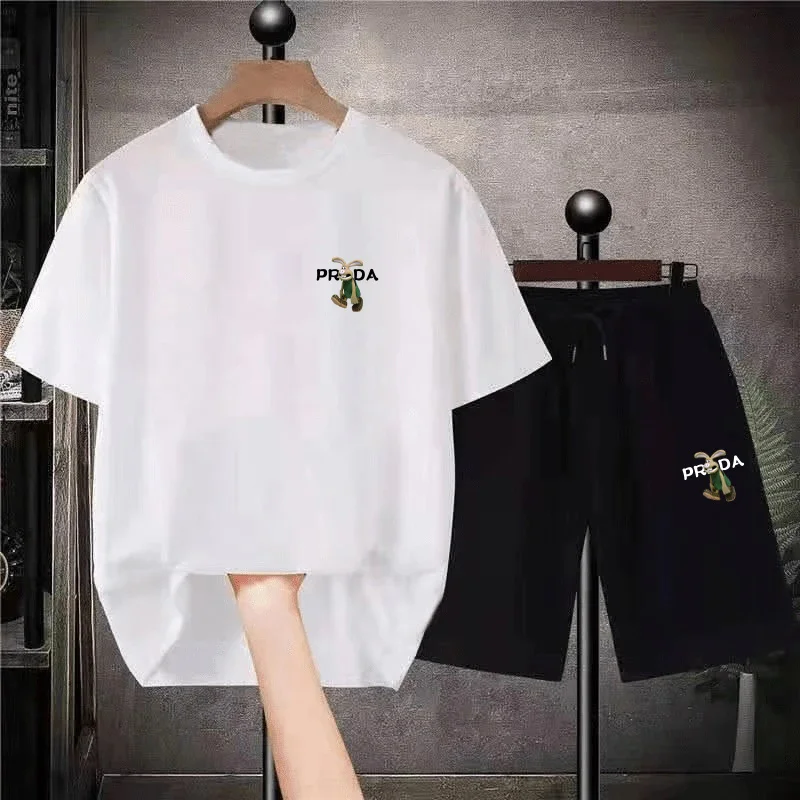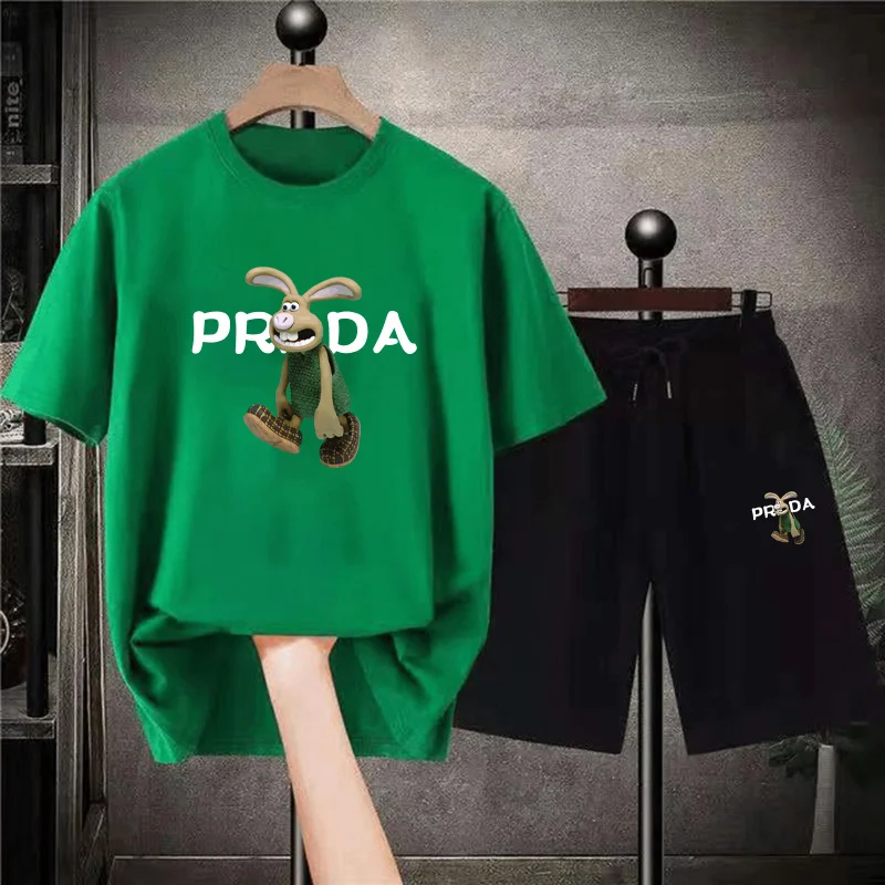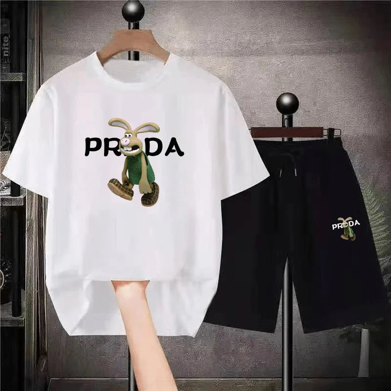 Костюм спортивный короткий однотонный с принтом кролика для мужчин и женщин