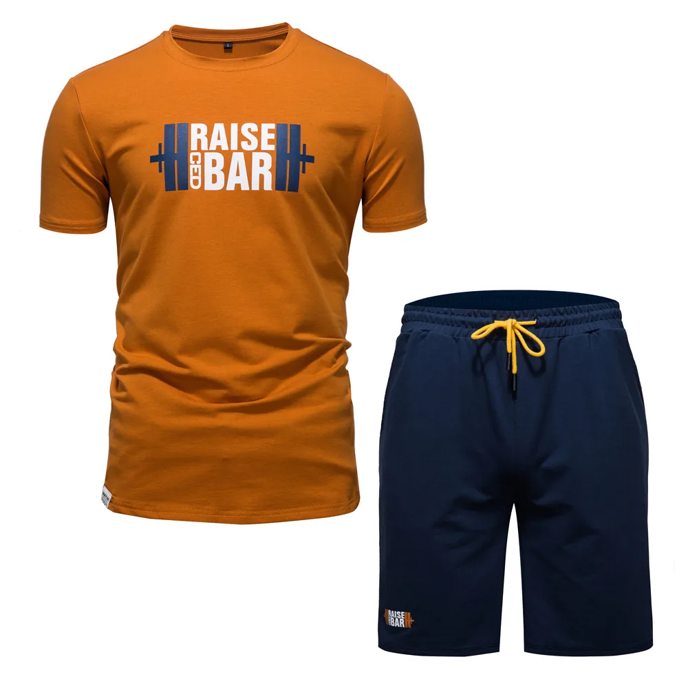 Костюм спортивный мужской из футболки и шортов, хлопок, повседневная одежда для спортзала, бега на открытом воздухе, лето