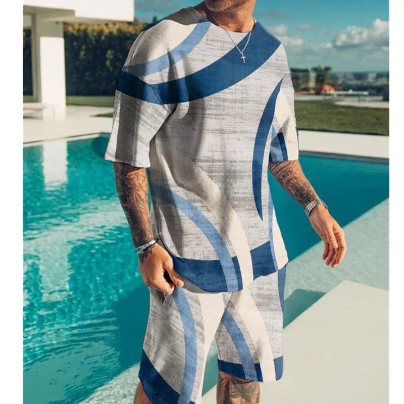 Костюм спортивный мужской из 2 предметов, футболка с коротким рукавом и шорты с 3D-принтом, лето 2022