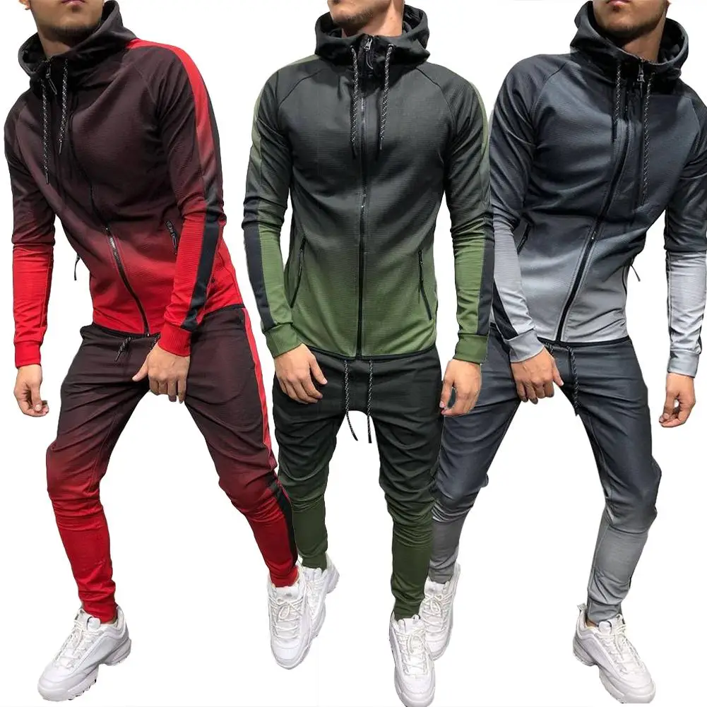 Костюм спортивный мужской нейлоновый, худи и брюки, комплект одежды для спорта, комплект спортивной одежды, градиентные цвета, 2019
